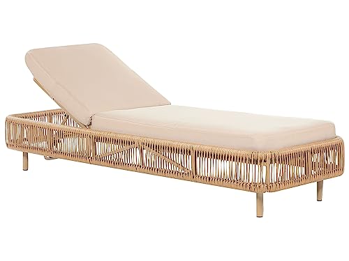 Die Gartenliege PE Rattan aus Aluminium Polsterung Verstellbare Rückenlehne Beige Osini ist ein Symbol für Geschmack und ein zugleich komfortables Möbelstück, das den Außenbereich bereichert. Sie wurde mit dem Anspruch gestaltet, Nutzern eine Luxuserfahrung zu bieten, verwoben mit der Zuverlässigkeit und Funktionalität, die von einem hochwertigen Gartenmöbel erwartet wird.