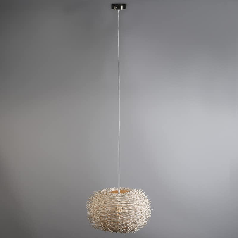 Schaffen Sie mit dieser besonderen Lampe aus Rattan einen wunderschönen natürlichen Look in Ihrem Interieur! Unsere Hatch 45 ist so verarbeitet, dass die vielen Rattan-„Zweige“ zu einem wunderschönen Lampenschirm zusammengesetzt werden! Dadurch erhalten Sie einen schönen und gemütlichen Lichteffekt in Ihrem Zuhause. Vervollständigen Sie Ihre Hängelampe mit einer Lichtquelle, die in eine E27-Fassung (max. 60 Watt) passt. Die Leuchte ist auch mit einem externen Dimmer dimmbar. Diese Hatch 45 hat eine maximale Höhe von 150 cm. Sie können es natürlich beliebig kürzen! Der Schirm hat einen Durchmesser von 45 cm und eine Höhe von 26 cm; Was für ein Hingucker! Die Montageplatte für die Decke hat einen Durchmesser von 10 cm. Verleihen Sie Ihrem Zuhause mit der Hatch 45 eine natürliche Note.