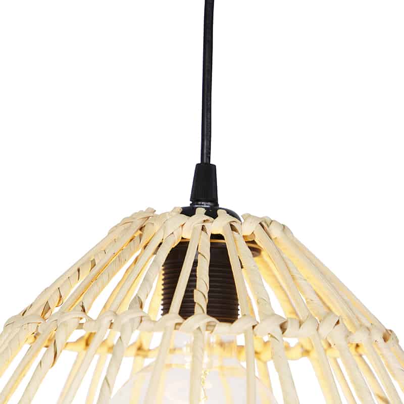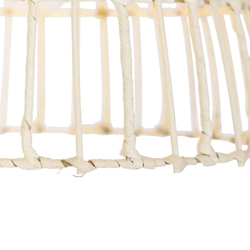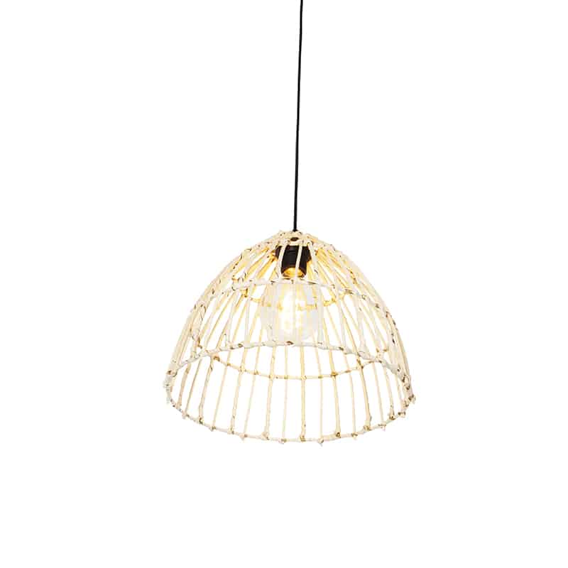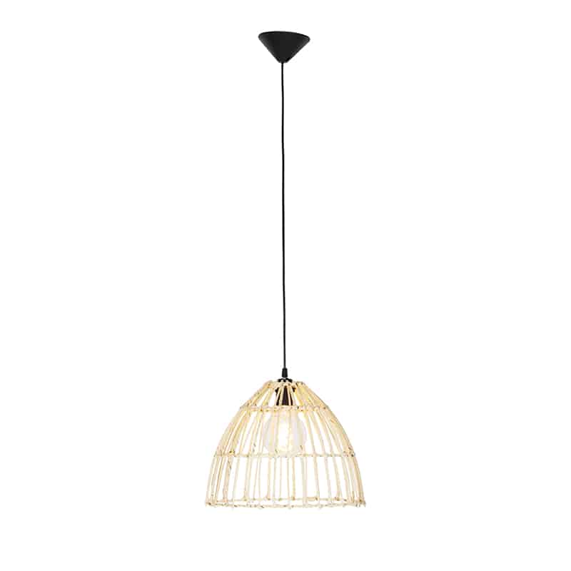 Die Magna ist eine ländliche Hängelampe, die sich sehr gut in Ihr Art Deco oder ländliches Interieur einfügt. Er ist höhenverstellbar von minimal 61 cm bis maximal 99,5 cm. Die Kordel hat eine Länge von 68,5 cm. Die Haube ist aus Bambus. Es hat einen Durchmesser von 35 cm und eine Höhe von 25 cm. Die Deckenplatte hat einen Durchmesser von 10 cm und eine Höhe von 6 cm. Der Rattanschirm in Kombination mit dem schwarzen Pendel macht es sehr zeitlos! Vollenden Sie es mit einer robusten Lichtquelle von maximal 60 Watt, die in eine E27-Fassung passt. Vergessen Sie nicht, diese separat zu bestellen! Verleihen Sie Ihrem Interieur mit diesem Magna eine ländliche Note.