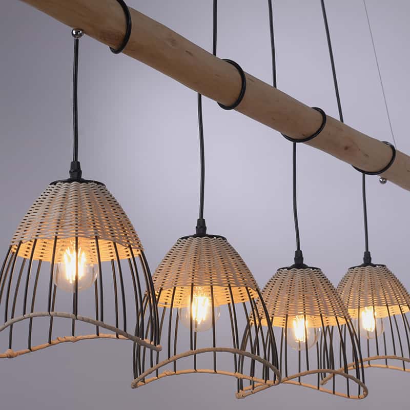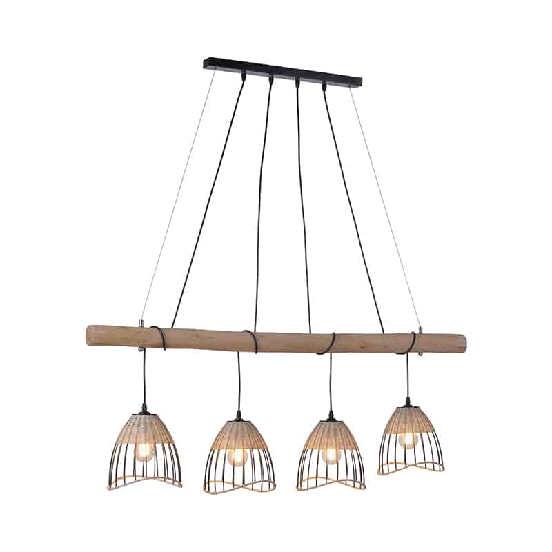 Hängelampe Treccia bringt Gemütlichkeit in Ihr Zuhause! Die Kombination aus schwarzem Stahl mit Rattan und Holz verleiht der Lampe ein ländliches Aussehen. Perfekt für Ihr Interieur! Die Hängelampe hat eine Breite von 20 cm und eine Länge von 120 cm. Treccia Pua und ist höhenverstellbar, mindestens 80 cm und maximal 120 cm. Sie vervollständigen die Hängelampe mit 4 Lichtquellen mit jeweils einer E27-Fassung (max. 60 Watt). Wählen Sie 4 Lichtquellen, die auch gut aussehen, weil Sie es so gut sehen können. Das Auge will auch etwas! Die Hängelampe ist auch mit einem externen Dimmer dimmbar, dieser ist nicht im Lieferumfang enthalten. Treccia ist wunderschön über dem Esstisch, im Wohnzimmer oder im Büro. Verleihen Sie Ihrem Interieur mit der Treccia Hängelampe Atmosphäre!