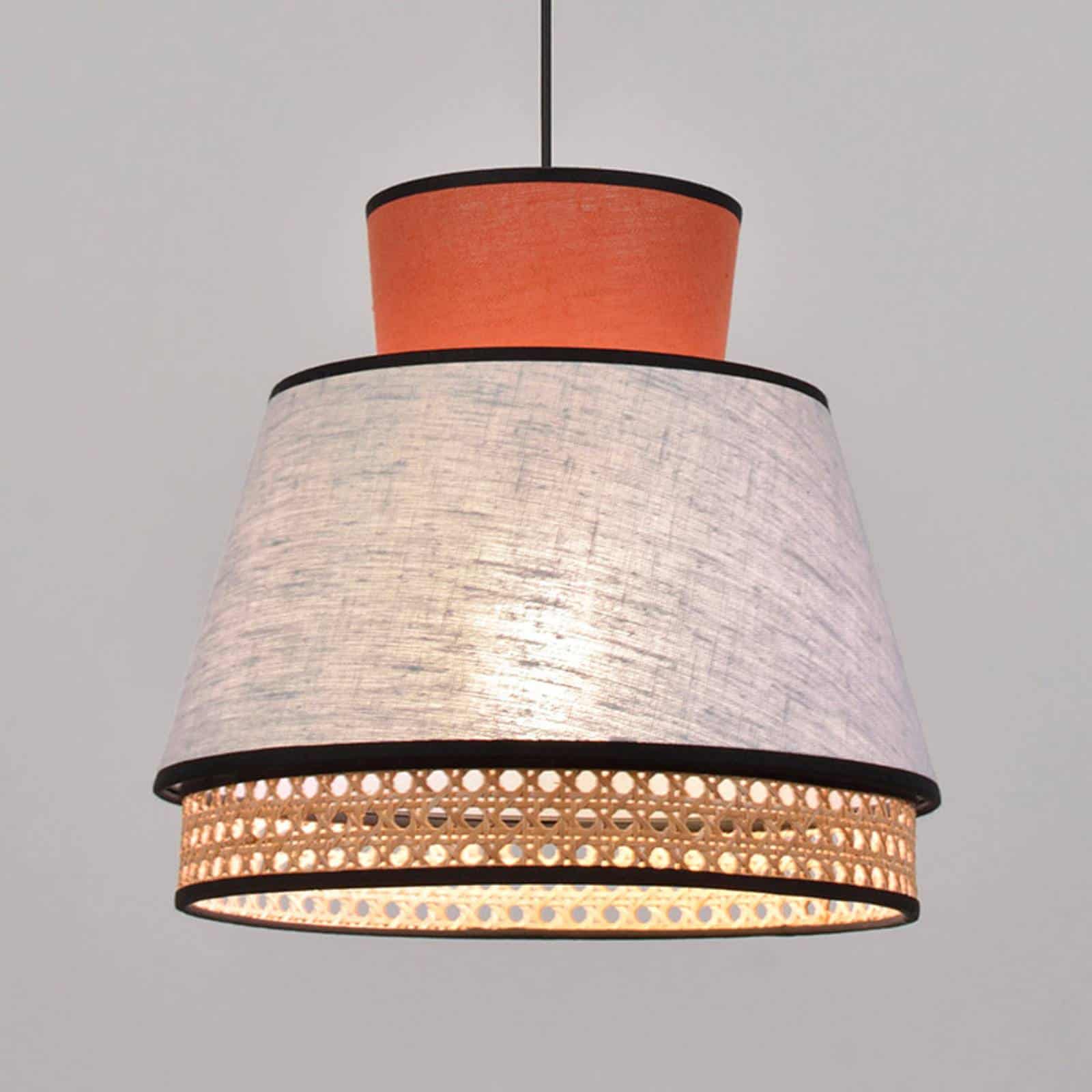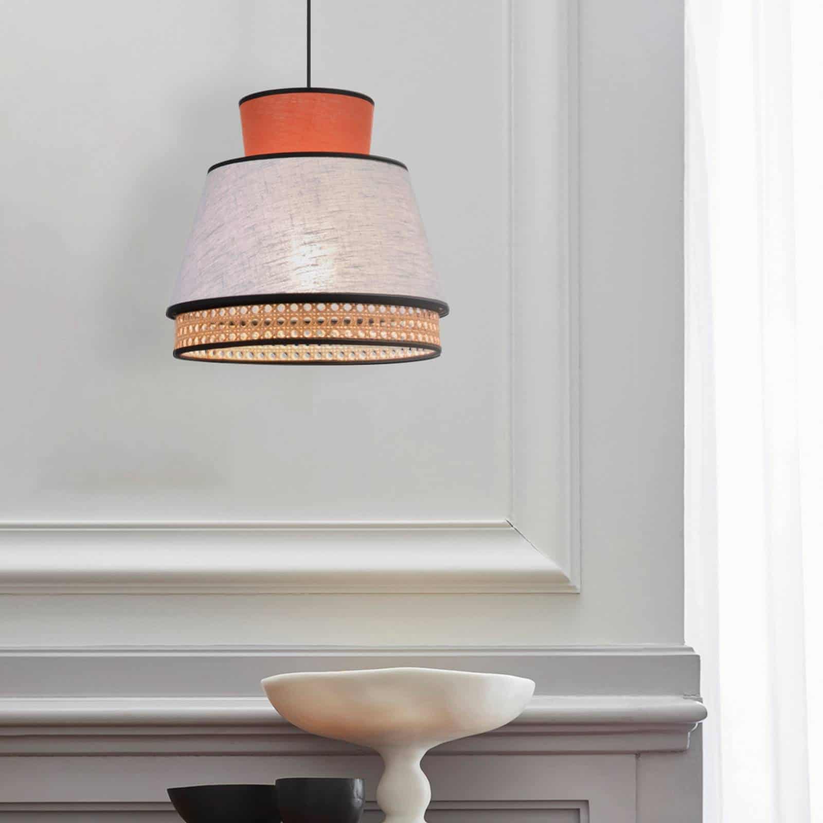 Die Hängeleuchte Singapour XM ist mit einem Schirm aus Rattangeflecht bestückt, über dem noch zwei miteinander verbundene Schirme aus Leinen in unterschiedlichen Farbtönen und Größen sitzen. Eingeschaltet entsteht eine tolle Lichtwirkung, da sich das Rattanmuster unter dem Leinenstoff abzeichnet. - mit Textilkabel bestückt - extern dimmbar - Design aus Frankreich: MARKET SET Artikelnummer: 6735045Hersteller: MARKET SETMaterial: Metall, Leinen, RattanFarbe: holz hell, hellgrau, rotHöhe: 23 cmDurchmesser: 30 cmAbhängung: 173 cmSonstige Maße: Baldachin - Ø 10 cm, Höhe 4 cmLeuchtmittel inklusive: NeinFassung: E27Leuchtmittel: 1 x 60 WDimmbar: JaSchutzklasse: IIAusführung: FARBELeistungsaufnahme: 60Style: DesignKeywords: Design-Hängeleuchte, Hängelampe, Lampe, Deckenleuchte, Deckenlampe, Hängeleuchte