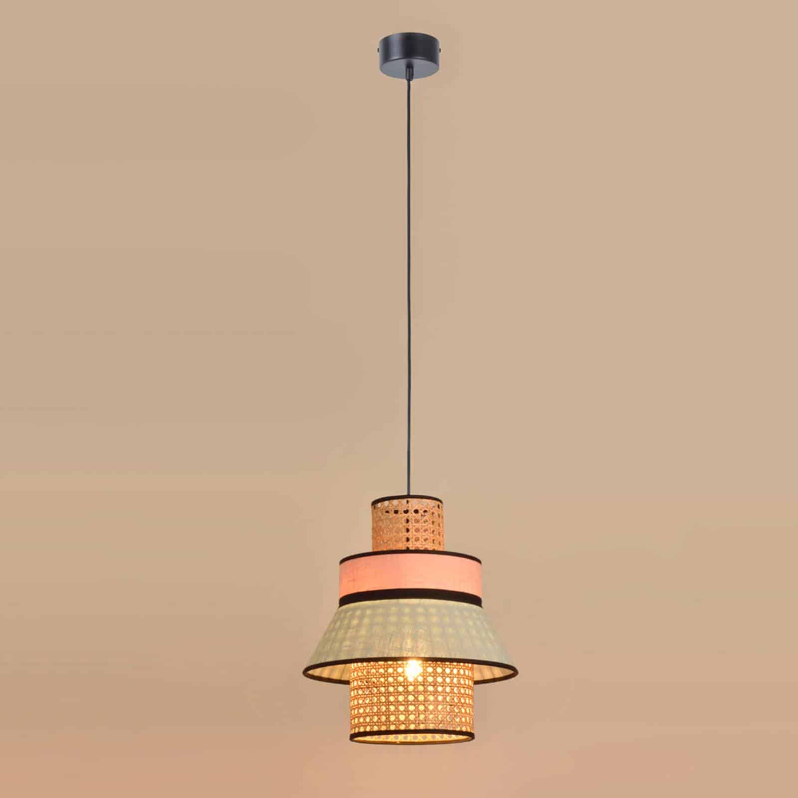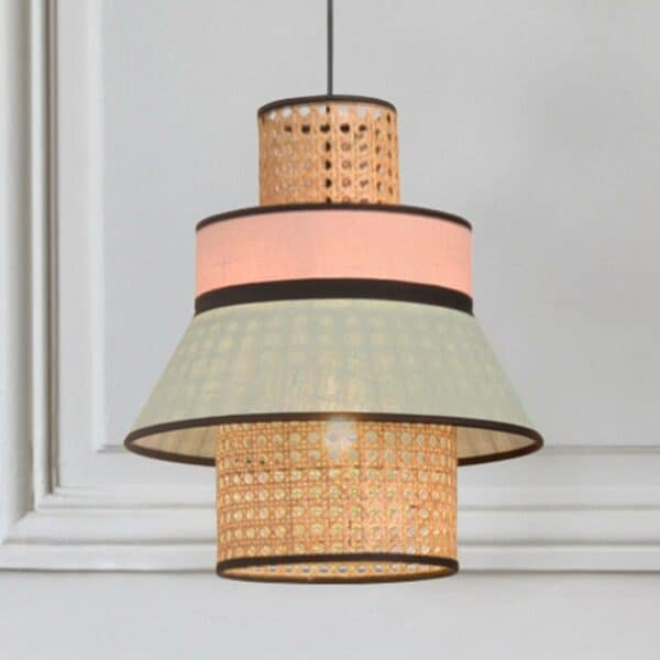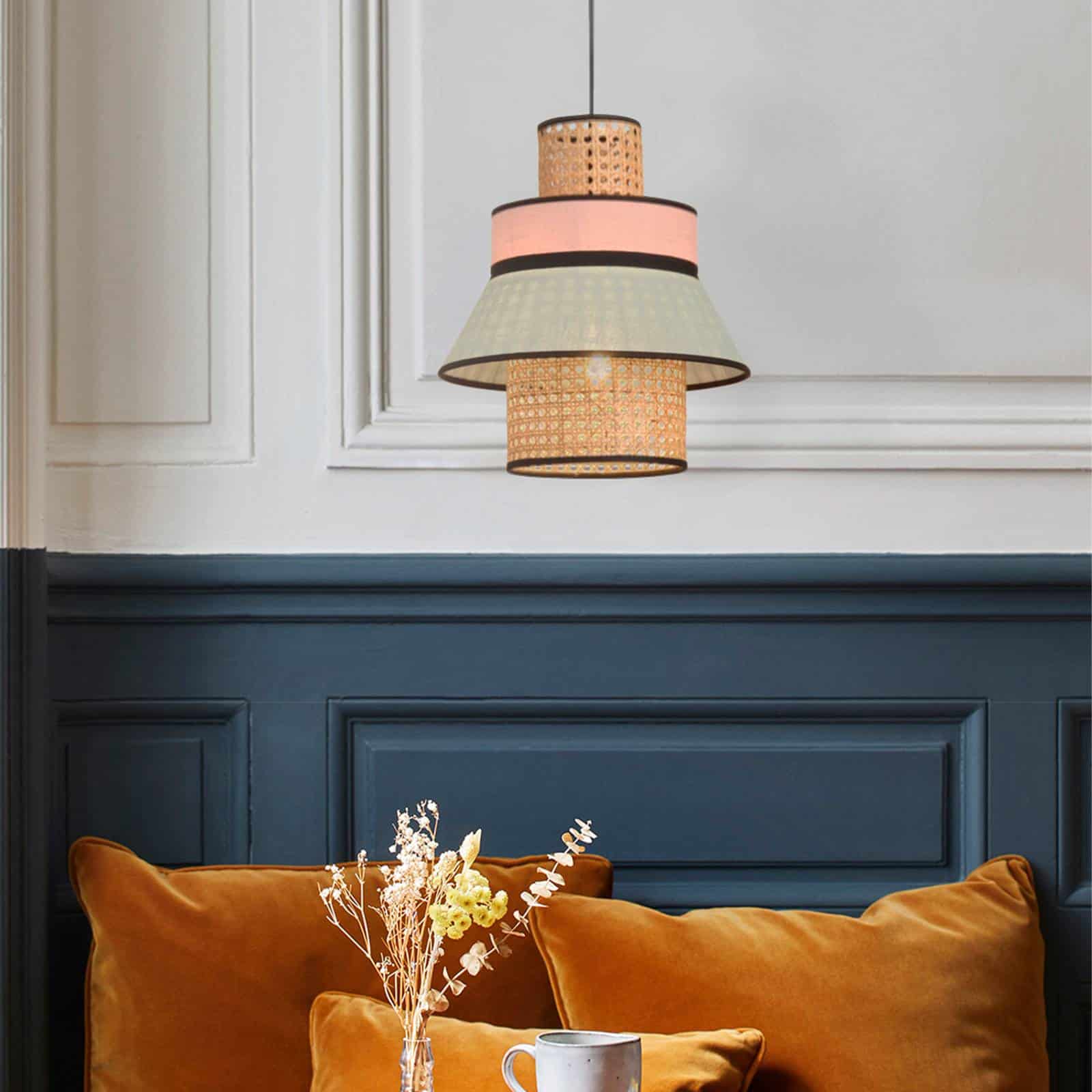 Die Hängeleuchte Singapour XML ist mit zwei Schirmen aus Rattangeflecht bestückt, über die noch zwei miteinander verbundene Schirme aus Leinen in unterschiedlichen Farbtönen sitzen. Eingeschaltet entsteht eine tolle Lichtwirkung, da sich das Rattanmuster unter dem Leinenstoff abzeichnet. - mit Textilkabel bestückt - extern dimmbar - Design aus Frankreich: MARKET SET Artikelnummer: 6735042Hersteller: MARKET SETMaterial: Metall, Leinen, RattanFarbe: holz hell, türkis, roséHöhe: 32 cmDurchmesser: 30 cmAbhängung: 182 cmSonstige Maße: Baldachin - Ø 10 cm, Höhe 4 cmLeuchtmittel inklusive: NeinFassung: E27Leuchtmittel: 1 x 60 WDimmbar: JaSchutzklasse: IIAusführung: FARBELeistungsaufnahme: 60Style: DesignKeywords: Design-Hängeleuchte, Hängelampe, Lampe, Deckenleuchte, Deckenlampe, Hängeleuchte