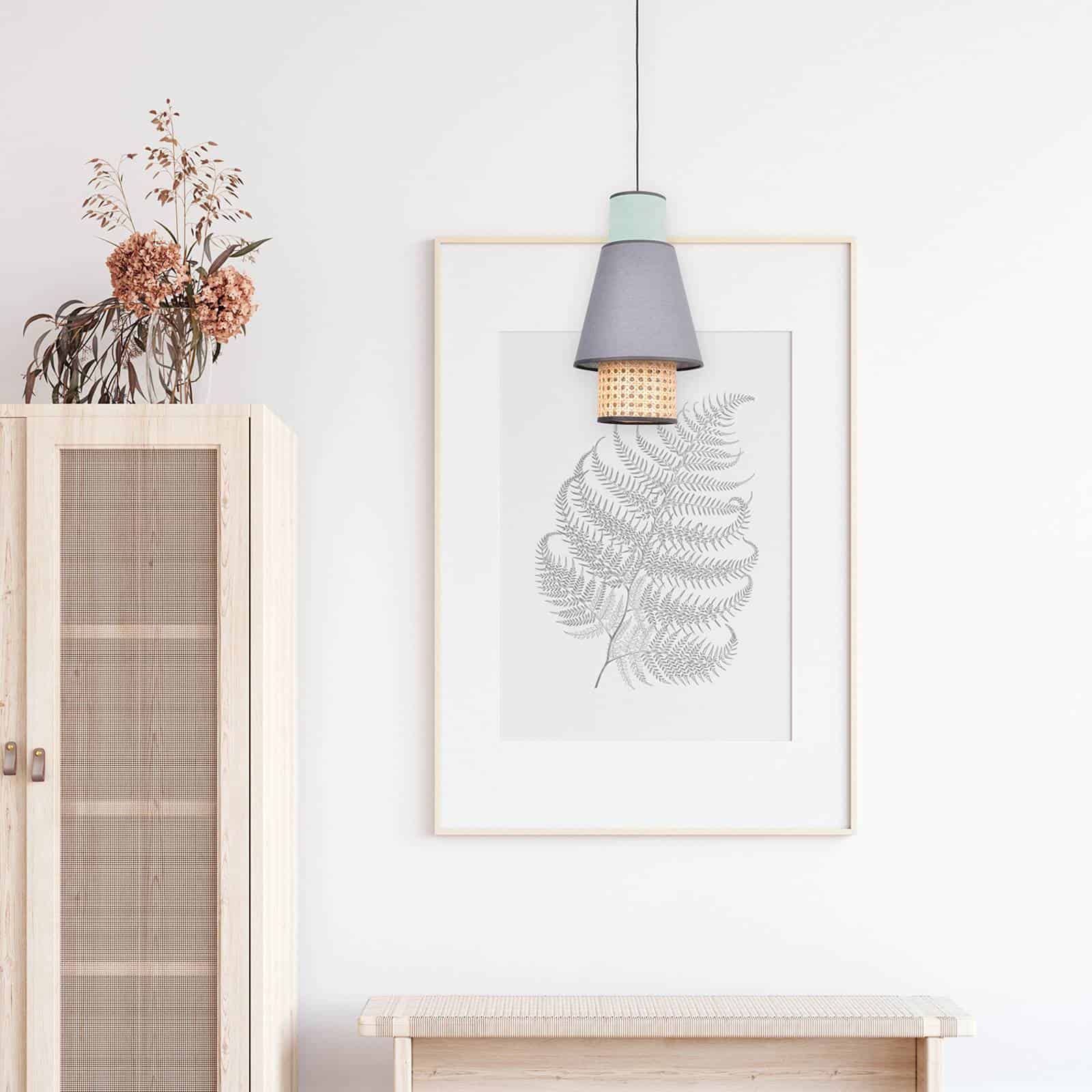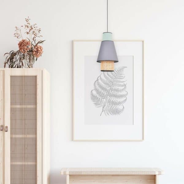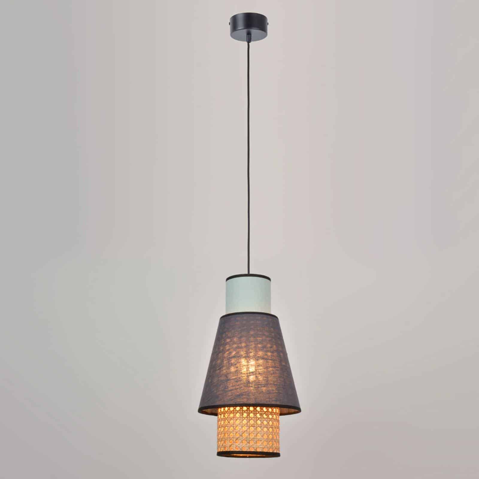 Die Hängeleuchte Singapour XS ist mit einem Schirm aus Rattangeflecht bestückt, über dem noch zwei miteinander verbundene Schirme aus Leinen in unterschiedlichen Farbtönen und Größen sitzen. Eingeschaltet entsteht eine tolle Lichtwirkung, da sich das Rattanmuster unter dem Leinenstoff abzeichnet. - mit Textilkabel bestückt - extern dimmbar - Design aus Frankreich: MARKET SET Artikelnummer: 6735048Hersteller: MARKET SETMaterial: Metall, Leinen, RattanFarbe: holz hell, anthrazit, türkisHöhe: 36 cmDurchmesser: 22 cmAbhängung: 186 cmSonstige Maße: Baldachin - Ø 10 cm, Höhe 4 cmLeuchtmittel inklusive: NeinFassung: E27Leuchtmittel: 1 x 60 WDimmbar: JaSchutzklasse: IIAusführung: FARBELeistungsaufnahme: 60Style: DesignKeywords: Design-Hängeleuchte, Hängelampe, Lampe, Deckenleuchte, Deckenlampe, Hängeleuchte