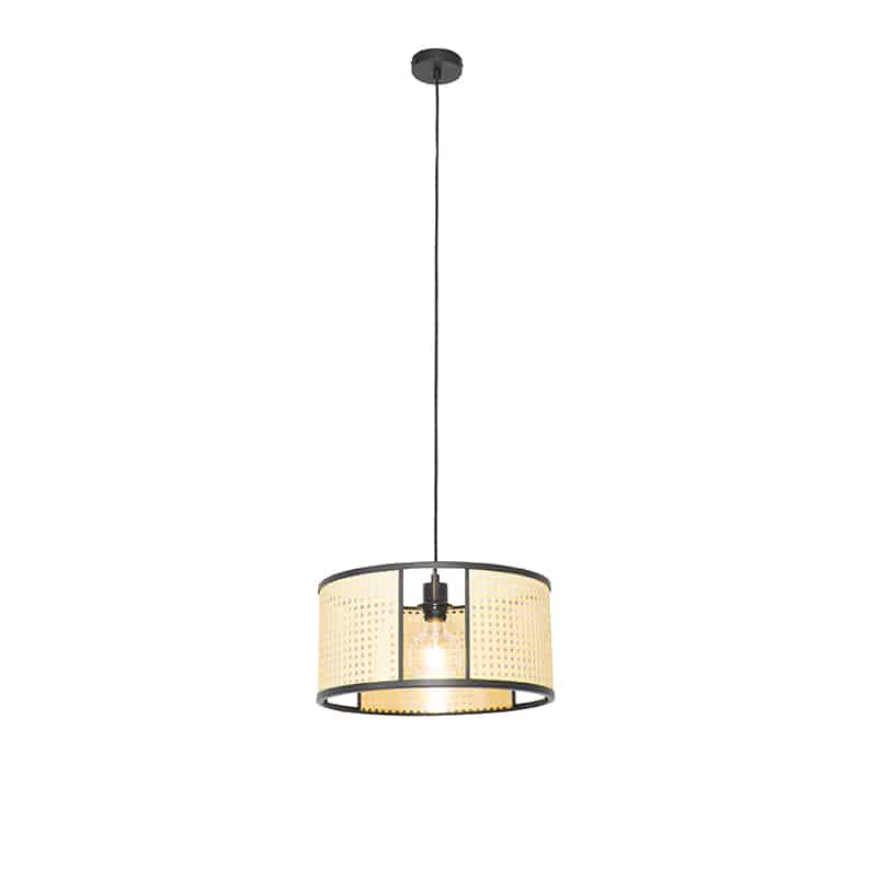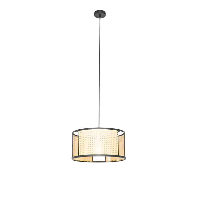 Oosterse hanglamp zwart met rotan 40 cm - Akira