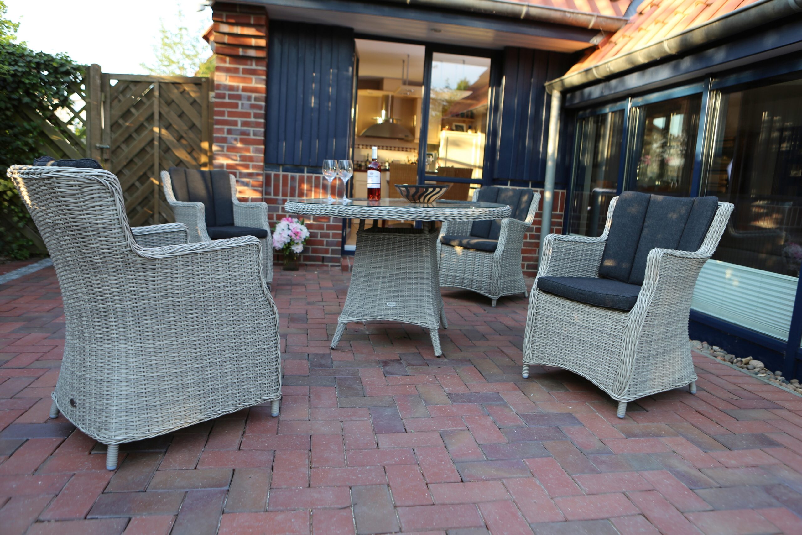 Gestell aus wetterfestem Aluminium. Wertiges handverarbeitetes hochwertige Halbrundgeflecht aus Polyrattan