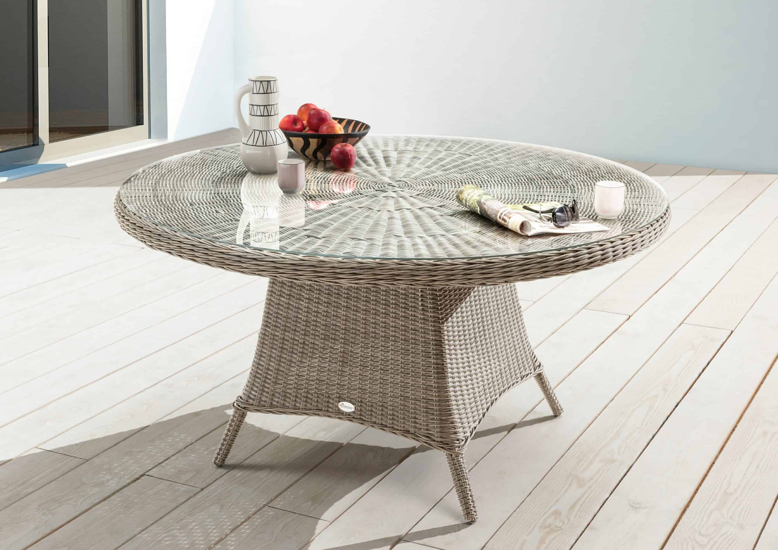 Beschreibung Destiny Gartentisch »LUNA«, 2-tlg., Polyrattangeflecht, mit aufgelegter Glasplatte