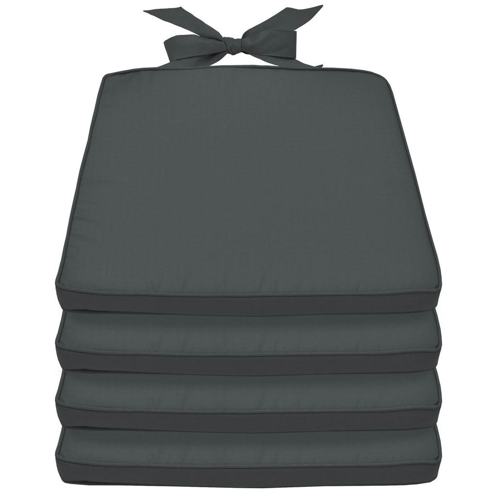 Stuhlkissen Pia von Beautissu mit Befestigungsband und abnehmbarem Bezug Mit dem Stuhlkissen Pia von Beautissu verwandeln Sie einen schlichten Gartenstuhl im Handumdrehen in eine bequeme Sitzgelegenheit. Die 5 cm dicken Polster verfügen über einen abnehmbaren Bezug mit Karo-Struktur. Machen Sie es sich auf Ihren Gartenstühlen und Rattan-Stühlen bequem. Das Sitzkissen Set besteht aus vier Kissen in der Größe 45 x 40 x 5 cm mit integrierten Befestigungsbändern. Dabei sind sie vorne 45cm breit und hinten, zur Rückenlehne hin, 40cm breit. Abnehmbarer Bezug Der Bezug mit feiner Karo-Struktur kann mittels Reißverschlusses ganz einfach abgenommen und gewaschen werden. Der Kissenbezug kann bei bis zu 30 Grad gewaschen werden. Das Beautissu Stuhlkissen Pia mit Karo-Struktur besteht aus einer bequemen Schaumstoffplatte mit einer Dichte von 25 kg/m³ und einem abnehmbaren Bezug und ist die perfekte Auflage für Ihren Stuhl im Garten oder Haus. Maße: Breite: vorne ca. 45 cm, hinten ca. 40 cm Tiefe: ca. 40 cm Höhe: 5 cm Bitte beachten Sie, dass die Kissen nur bedingt outdoor-geeignet sind. Dies bedeutet, dass Sie diese keinem starken Regen oder langanhaltender Feuchtigkeit aussetzen sollten.