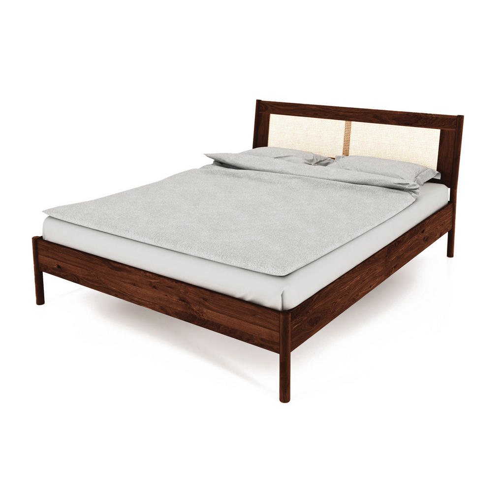 Beschreibung byoak BETT MIT RATTANKOPFTEIL INA 90x190 Wildeiche Dunkelbraun