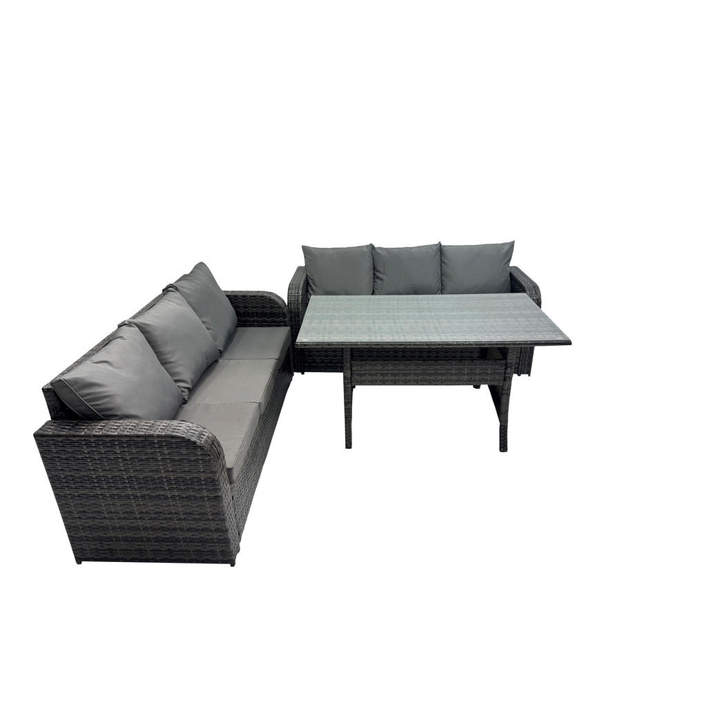 Satz Abmessungen: • 2 x 3-Sitzer Sofa: 177W x 67D x 79H cm • 1 x Esstisch :140L x 80W x 69H cm Details: • Farbe:Dunkelgrau gemischt • Materialien: Polyrattan,Stoff,verzinkter Stahl,Schaum,Glas • Stoffzusammensetzung Bezug: 100% Polyester • pulverbeschichtetes Metallgestell • Wartungsarm, einfach zu reinigen • Rattan-Möbel-Sets von Hand gefertigt • 8 CM dickes Sitzkissen,Abnehmbarer und waschbarer Sitzkissenbezug • Flache Packung • Kostenlose Rückgabe für Qualitätsprobleme innerhalb von 30 Tagen • Direktverkauf der Fabrik,Ein Jahr Garantie • Lieferung frei Bordsteinkante