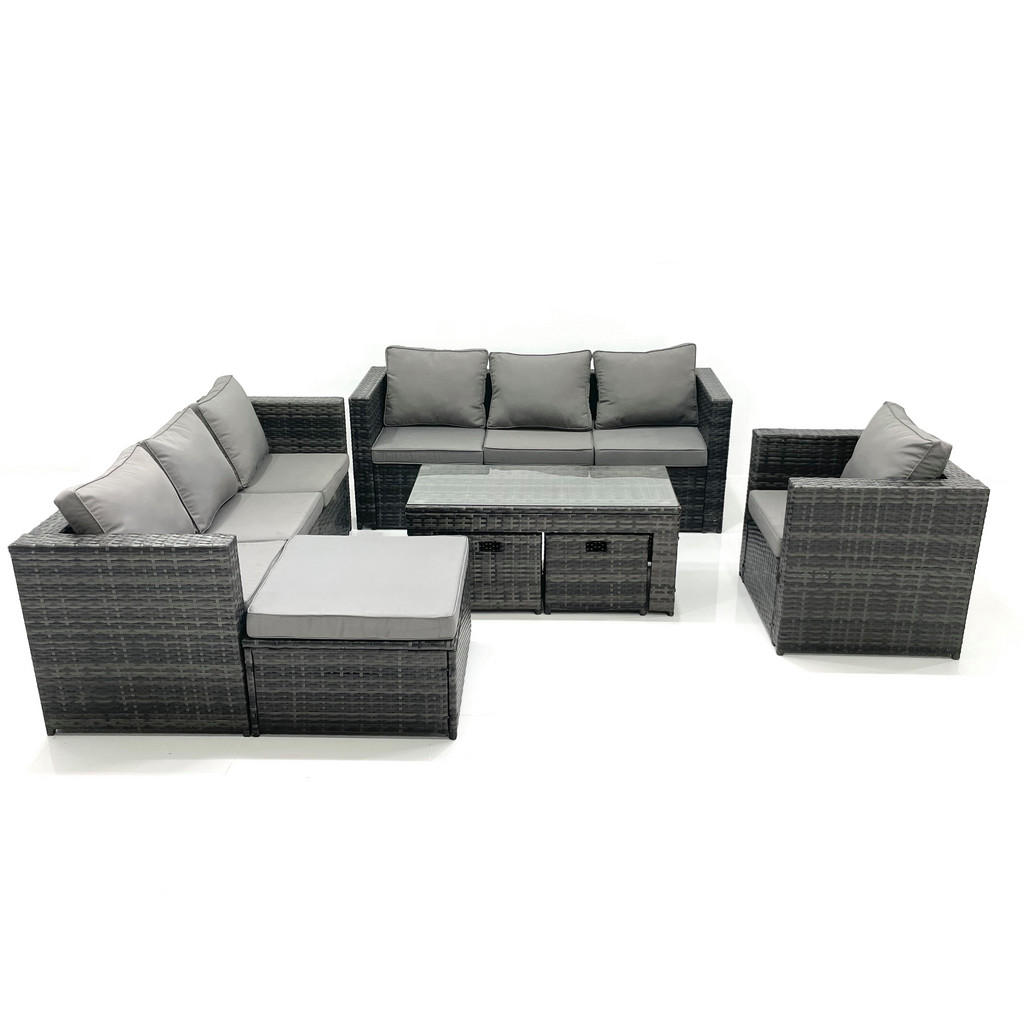 Fimous GARTENMÖBEL-SET COUCHTISCH SESSEL SOFA mit HOCKER Polyrattan Dunkelgrau Gemischt 10-Sitzer Dunkelgrau Fimous AT