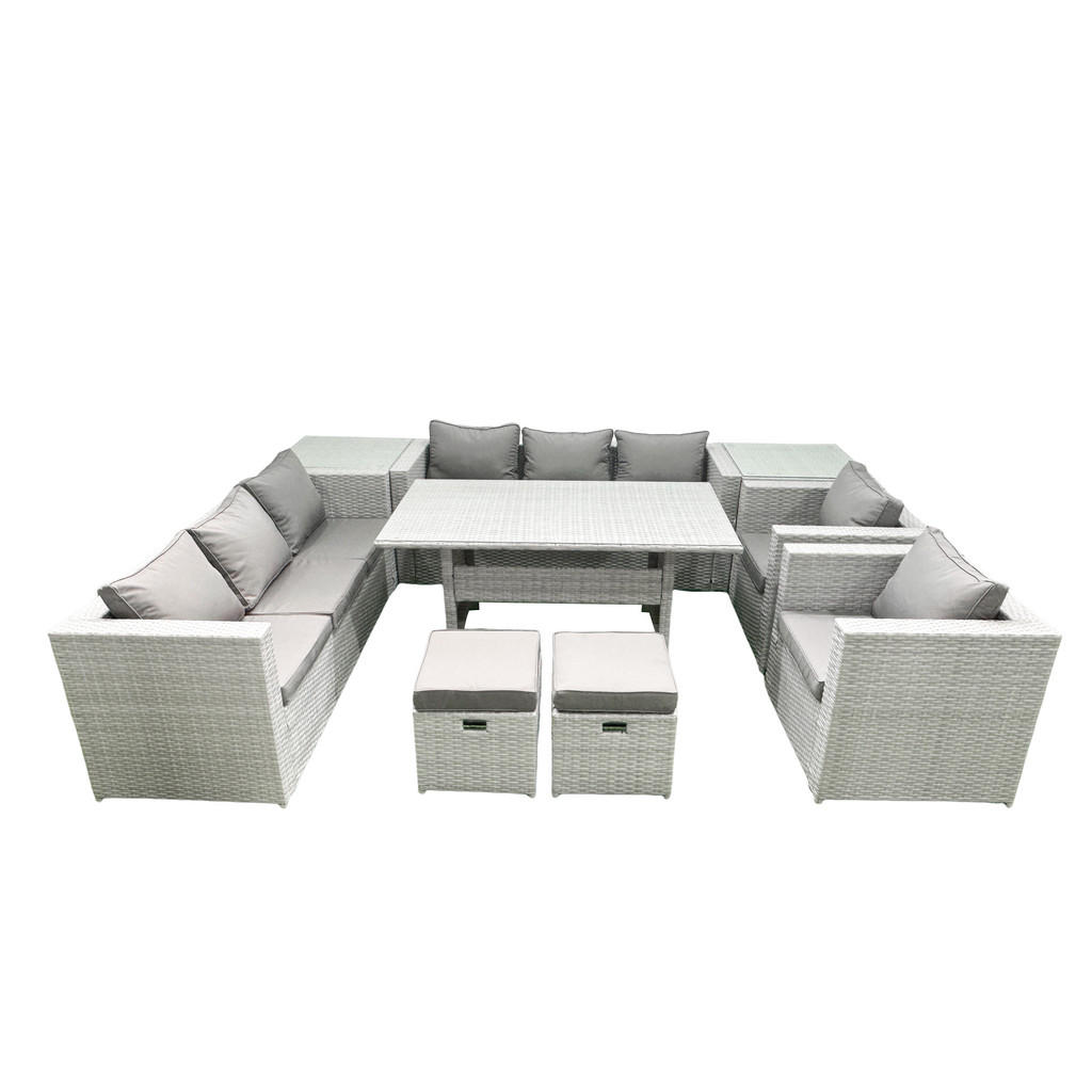 • Satz Abmessungen: • 2 x Sofa mit doppelter Armlehne: 177W x 65D x 66H cm • 2 x Lehnstuhl: 74L x 65W x 66H CM • 2 x Beistelltisch :65L x 65W x 66H cm • 2 x Vollständig montierte kleine Fußhocker :40W x 40D x 34H cm • 1 x Rechteckiger Esstisch :140L x 80W x 69H cm Details: • Farbe:Hellgrau-Mix • Materialien: Polyrattan,Stoff,verzinkter Stahl,Schaum,Glas • Stoffzusammensetzung Bezug: 100% Polyester • pulverbeschichtetes Metallgestell • Wartungsarm, einfach zu reinigen • Rattan-Möbel-Sets von Hand gefertigt • 8 CM dickes Sitzkissen,Abnehmbarer und waschbarer Sitzkissenbezug • Flache Packung • Kostenlose Rückgabe für Qualitätsprobleme innerhalb von 30 Tagen • Direktverkauf der Fabrik,Ein Jahr Garantie • Lieferung frei Bordsteinkante