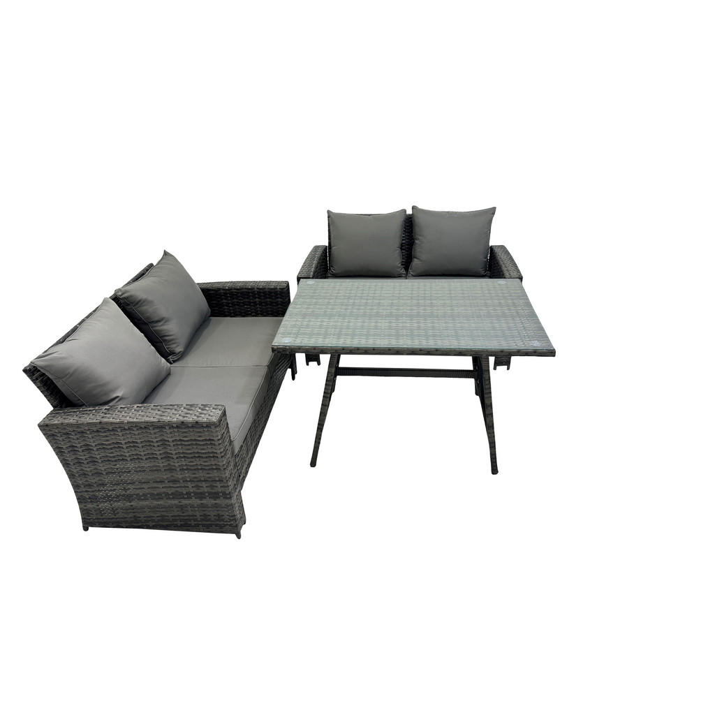 >>Gartenmöbel Set Abmessungen: • 2 x 2 Sitzer Sofa:124L x 70W x 74H CM • 1 x Esstisch:110L x 70W x 70H cm Details: • Farbe:Dunkelgrau gemischt • Materialien:Polyrattan,Stoff,verzinkter Stahl,Schaum,Glas • Hergestellt aus hochwertigem PE-Rattan, handgeflochten • Stoffzusammensetzung Bezug:100% Polyester • pulverbeschichtetes Metallgestell • Wartungsarm, einfach zu reinigen • 8 CM dickes Sitzkissen,Abnehmbarer und waschbarer Sitzkissenbezug • Flache Packung • Kostenlose Rückgabe für Qualitätsprobleme innerhalb von 30 Tagen • Direktverkauf der Fabrik,Ein Jahr Garantie • Lieferung frei Bordsteinkante