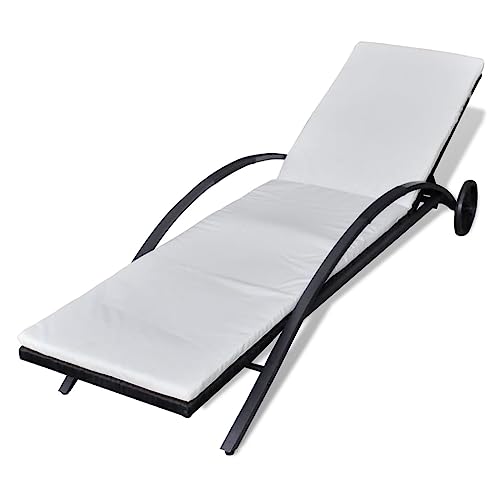 Beschreibung Myheimly Sonnenliege mit Polster & Rollen Poly Rattan Gartenliege Relaxliege Liegestuhl Liege Schwarz