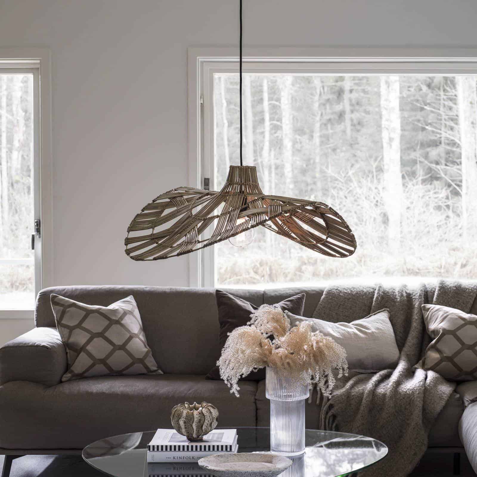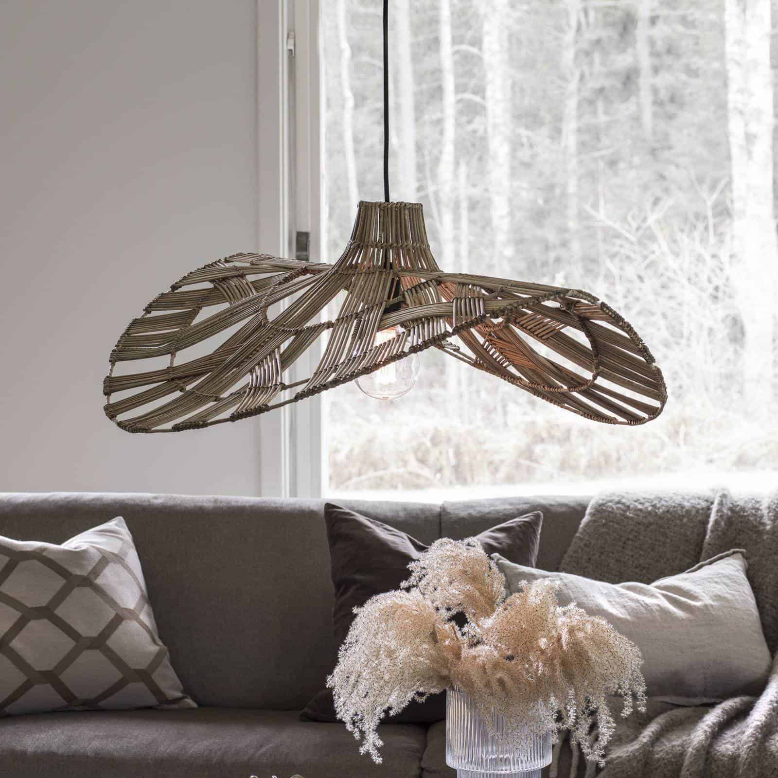 Eine schwungvolle Form, die eine sanfte Welle beschreibt, weist der aus Rattan gearbeitete Schirm der Pendelleuchte Wella auf. Das Rattangeflecht bewirkt, dass das Licht nach allen Seiten hin abstrahlt und hübsche Schattenzeichnungen entstehen. Attraktive Hängeleuchte für Wohn- und Schlafräume sowie für die Tischbeleuchtung. - Kabel schwarz Artikelnummer: 7595063Hersteller: PR HomeMaterial: RattanFarbe: holz hellLänge: 81 cmBreite: 75 cmHöhe: 31 cmAbhängung: 151 cmLeuchtmittel inklusive: NeinFassung: E27Leuchtmittel: 1 x 40 WDimmbar: JaLeistungsaufnahme: 40Keywords: Holz-Hängeleuchte, Hängelampe, Lampe, Deckenleuchte, Deckenlampe, Hängeleuchte