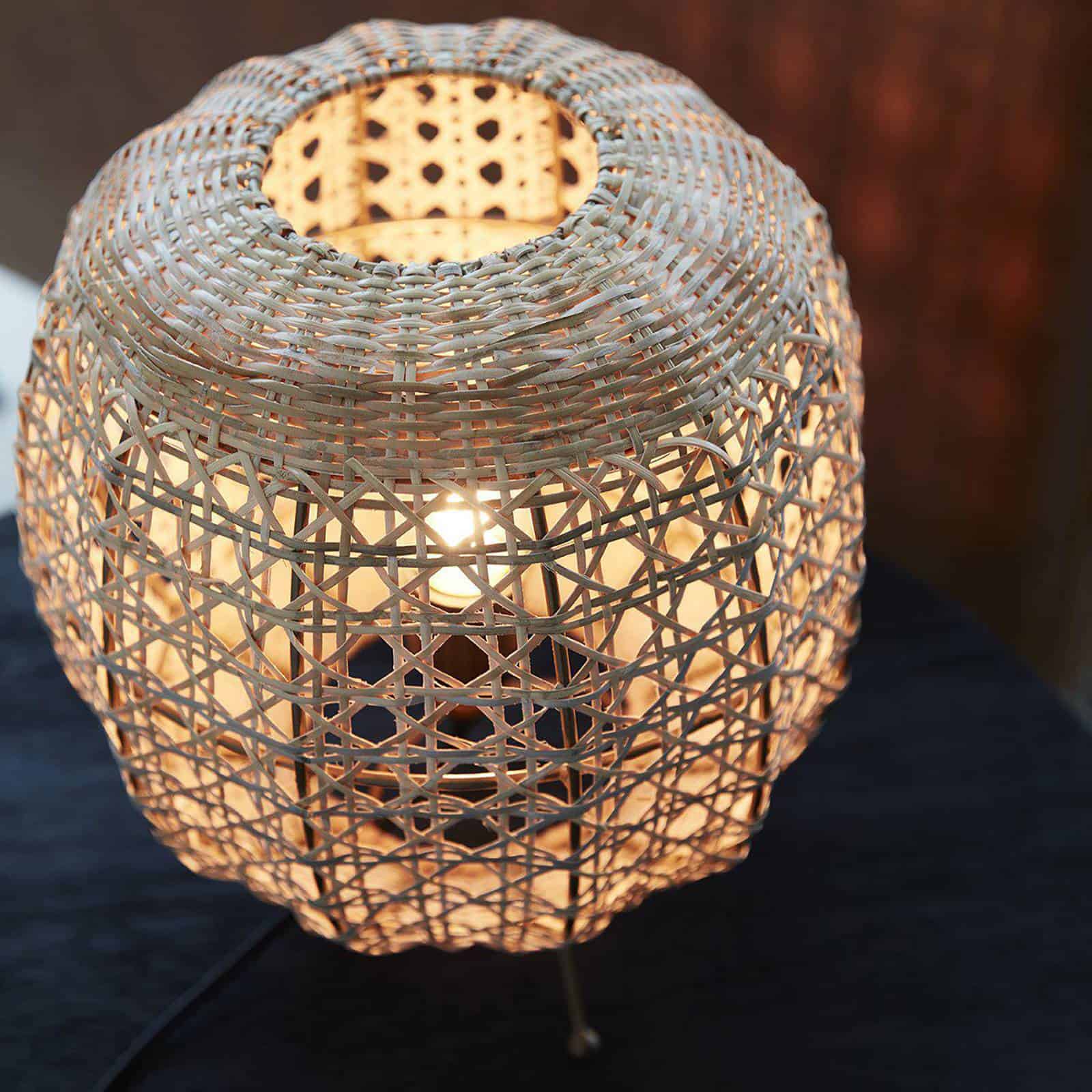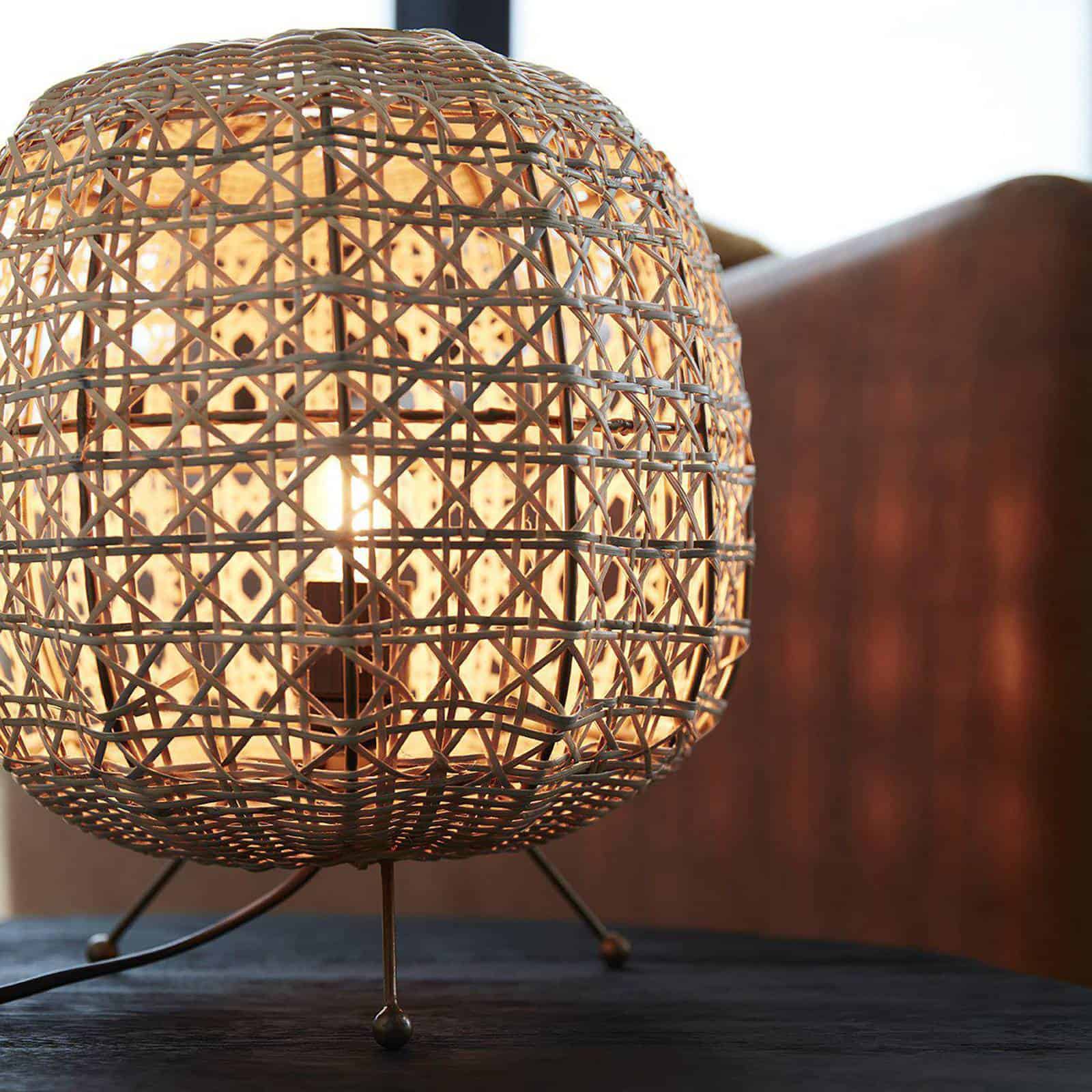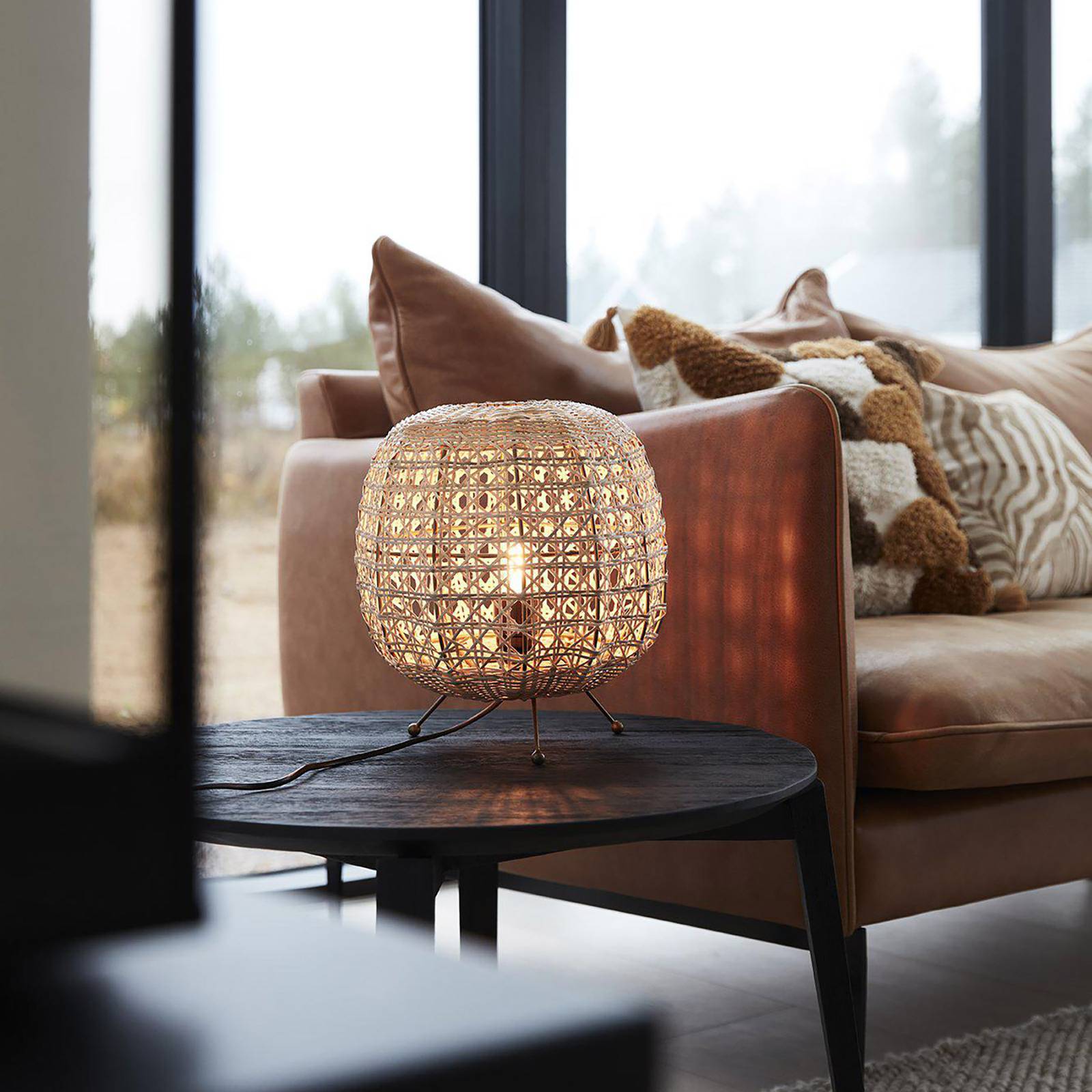 Die Tischleuchte Wickham kann flexibel im ganzen Wohnbereich eingesetzt und beispielsweise auf Kommode, Regalen oder Tischen platziert werden. Sie besteht aus handgeflochtenem Rattan, was der Umgebung eine schöne natürliche Note verleiht. Der Ein- und Ausschalter ist am Zuleitungskabel integriert. Das Leuchtmittel ist nicht inklusive. Da Rattan ein Naturmaterial und der Schirm von Hand geflochten ist, kann es zu geringen Musterabweichungen kommen. Außerdem ist es möglich, dass sich die Farbe im Lauf der Zeit verändert. Artikelnummer: 10000755Hersteller: PR HomeMaterial: Rattan, KunststoffFarbe: beigeHöhe: 30 cmDurchmesser: 25 cmSonstige Maße: Länge Kabel 160 cmLeuchtmittel inklusive: NeinFassung: E27Leuchtmittel: 1 x 25 WDimmbar: NeinSchutzklasse: IILeistungsaufnahme: 25Keywords: Tischleuchte
