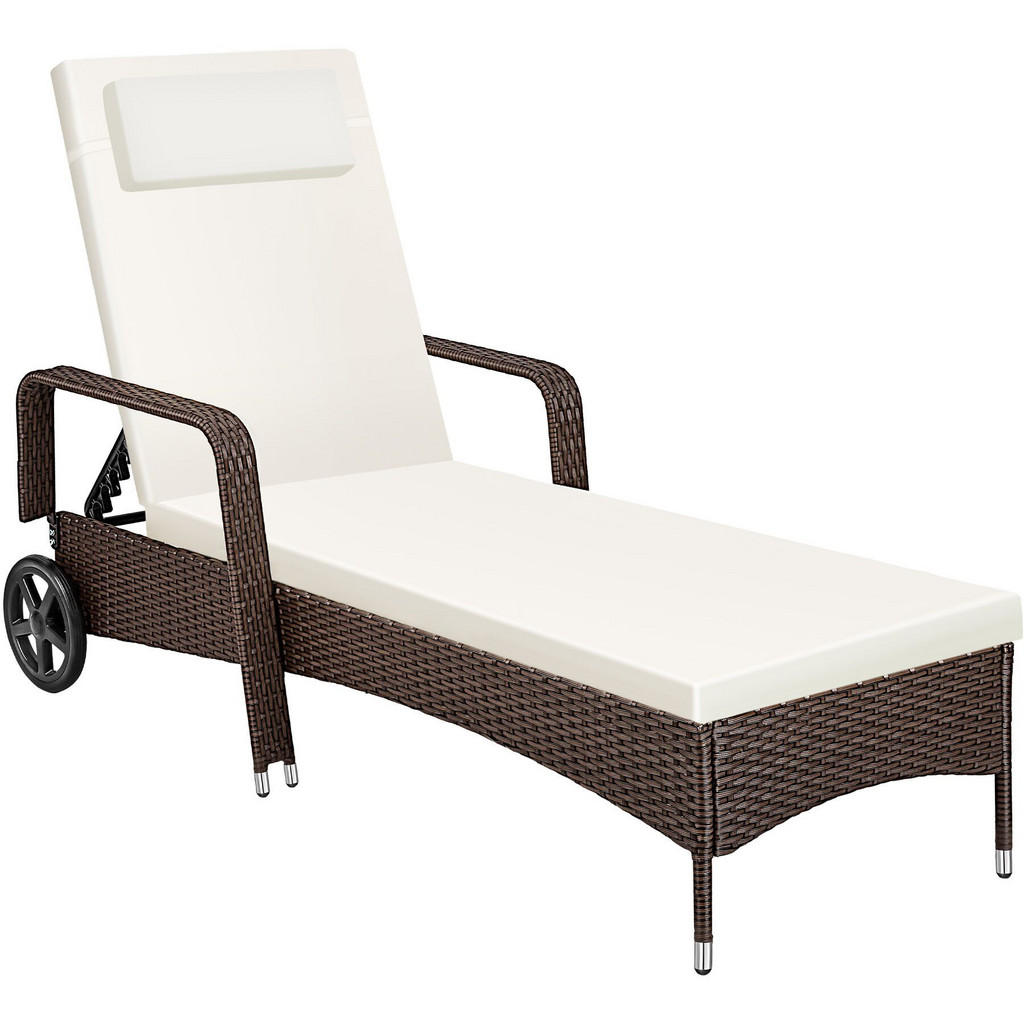 Relaxen und Entspannen im Garten oder auf der Terasse. Der absolute Hingucker auch für Balkon, Sauna oder Wellnessbereich. Highlights: Für Drinnen und Draußen geeignet Sehr schönes Design 6-fach höhenverstellbar Kissen für Rücken oder Kopfbereich Hochwertiges Rattan-Kunststoffgeflecht Pflegeleicht Gummierte Räder Technische Details: Abmessungen (LxBxH): ca. 200 x 70 x 33 cm Liegefläche (LxB): ca. 198 x 54 cm Polsterstärke: 5 cm Bodenhöhe: ca. 33 cm Armlehnenhöhe: ca. 57 cm Gewicht: ca. 15 kg Belastbarkeit 120 kg Material: Poly Rattan, Polster aus 100% Polyester, MetallgerüstVerstellbare Rückenlehne: 1. Stufe, Höhe: ca.33,5 cm 2. Stufe, Höhe: ca. 57 cm 3.Stufe, Höhe: ca.70 cm 4. Stufe, Höhe: ca. 80 cm 5.Stufe, Höhe: ca. 90 cm 6.Stufe, Höhe: ca. 100 cm Lieferumfang: 1 Rattan Sonnenliege inkl. Polster und Kissen 1 Montageanleitung