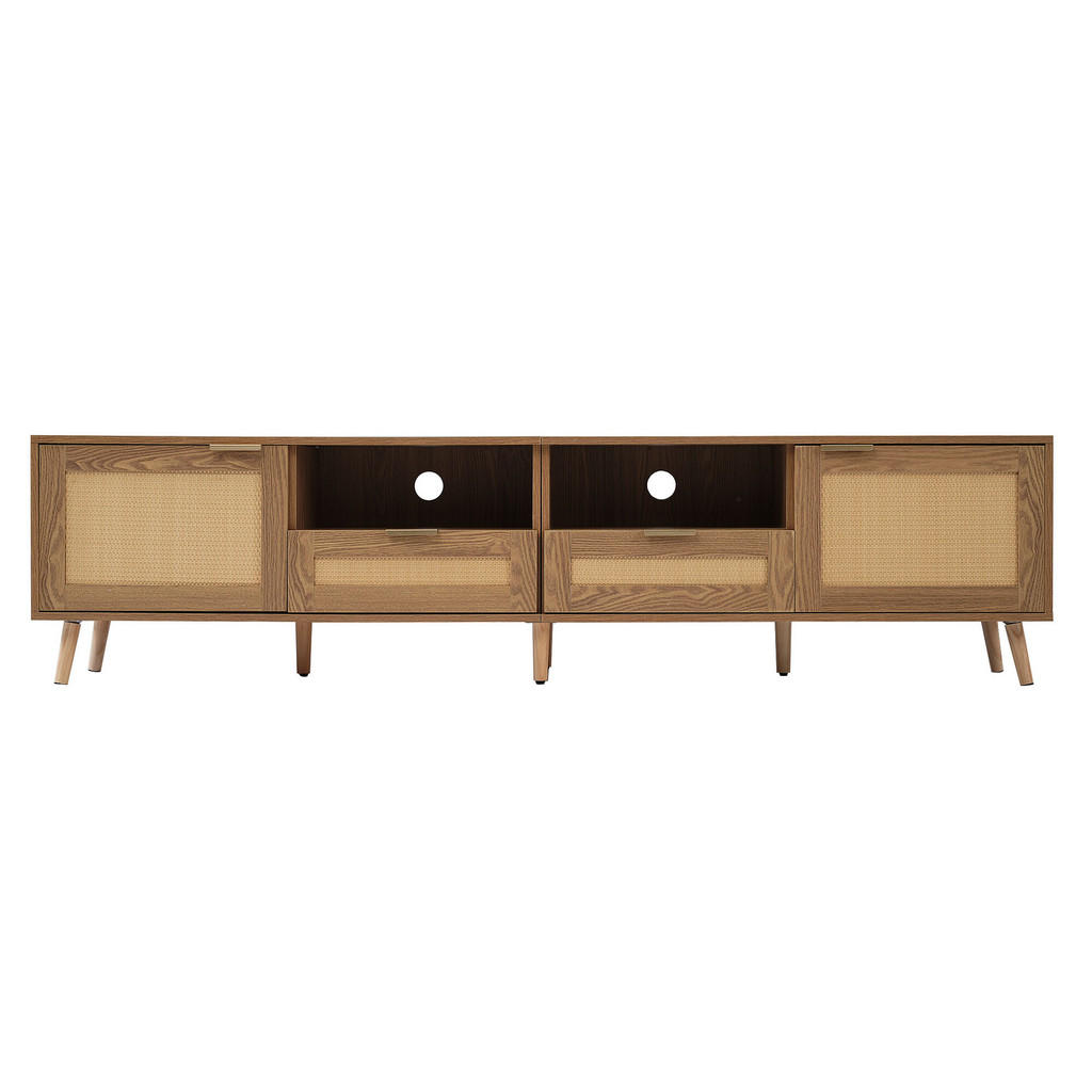 TV-Möbel aus Rattangeflecht Beine aus Massivholz 200*37*49cm Torqeols Dieses TV-Möbel hat einen natürlichen Holzstil für eine gemütliche und warme Atmosphäre, und Design aus Rattangeflecht, um einen exotischen Naturcharme zu schaffen. Die Beine aus Massivholz sind robust und stabil. Das TV-Möbel verfügt über 4 verstellbare Kufenfüße in der Mitte, die Flexibilität bieten. Das Möbelstück beeindruckt durch seine enorme Lagerkapazität und ermöglicht es Ihnen, Ihre Geräte und Gegenstände sorgfältig zu verstauen. Einfacher und praktischer Zusammenbau: Unser TV-Möbel ist so konzipiert, dass es sich leicht und problemlos zusammenbauen lässt. Merkmale: Material: Mdf, geflochtenes Rattan und Holz. Produktabmessungen: 200/37/49cm Abmessungen des Pakets 2 Pakete : 114.5 /46 /15.5 cm 114.5 /45.5 / 14 cm Netto-/Bruttogewicht 40.2/42.2 kg Garantie : 2 Jahre (siehe Garantiebestimmungen)